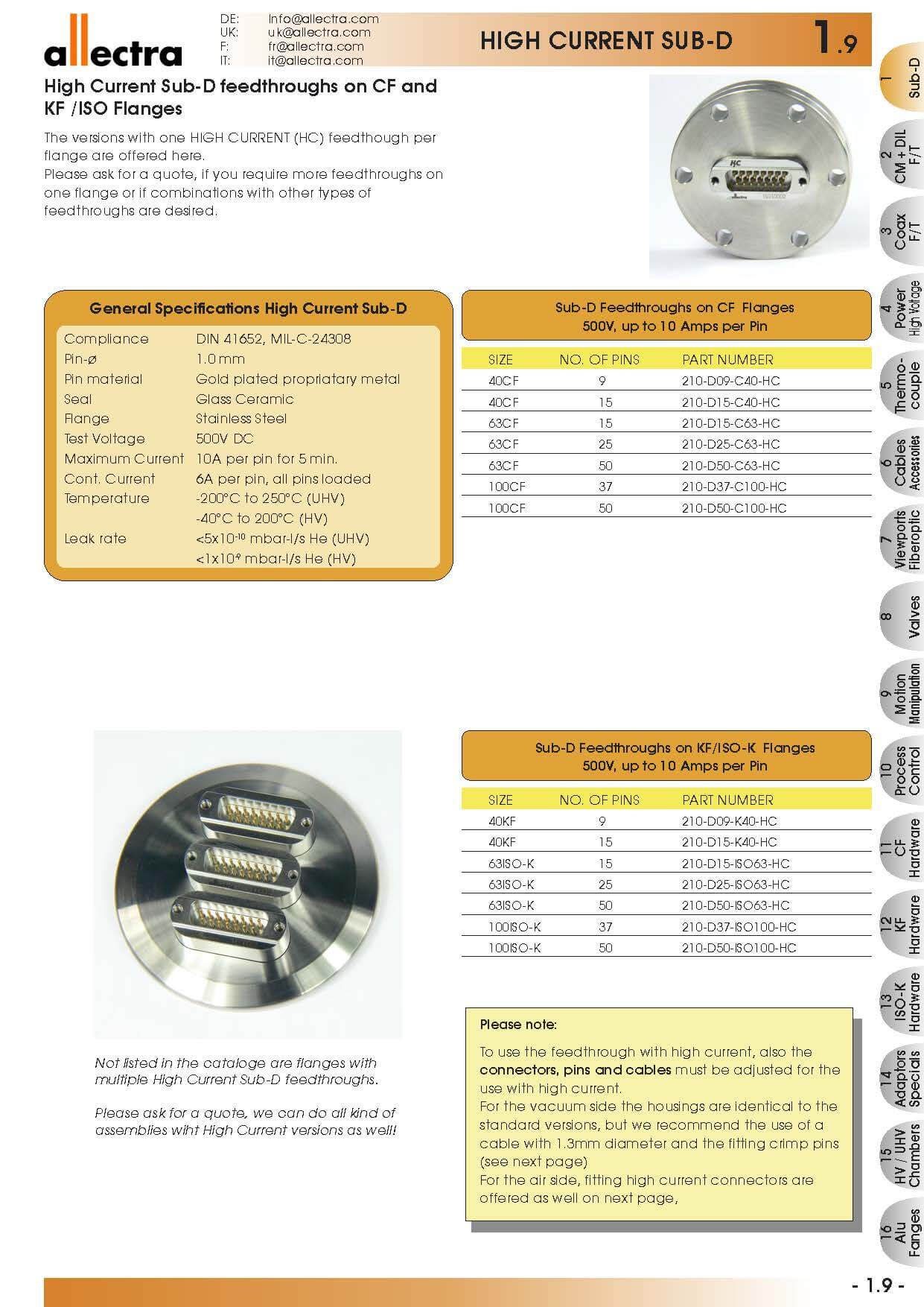 allectra CF,KF,ISO法兰高电流型Sub-D真空馈通