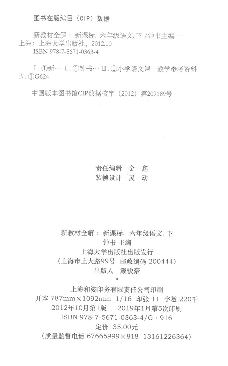 课本全解:小学语文(6年级下)(人教版)\/《课本全