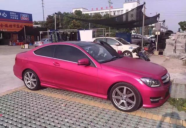 奔驰汽车改色冰膜玫红车身贴膜效果图