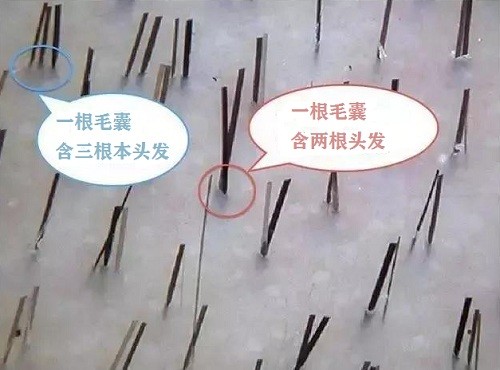人们之前总认为一个毛孔是长一根头发,其实不是这样的,一个毛孔能长1-4根头发。我们称之为“毛囊群”。遗憾的是,医生们过去不能将这些“毛囊