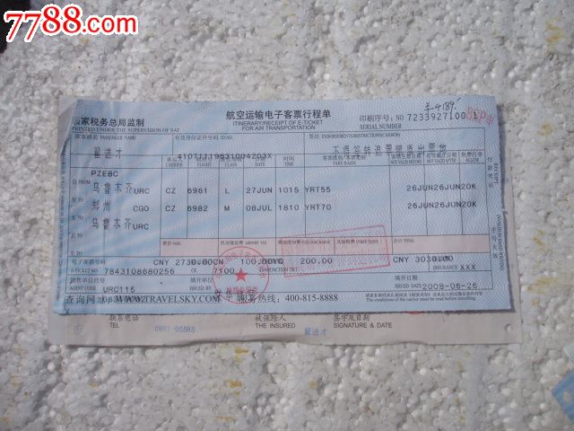 乌鲁木齐--郑州--乌鲁木齐_飞机\/航空票_淘宝乐