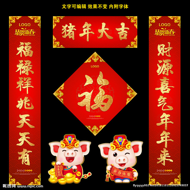 春联 对联 猪年对联 新年春联 对联广告 春联设