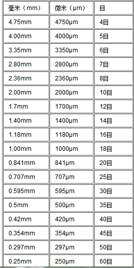灵寿县凯达矿产品加工厂,专业生产 石英砂 河沙 重钙粉 白沙子 欢迎新老客户采购。米与目数对照表 1微米-12500目 1.3微米-8000目 2微米-6250目 2.6微米-5000目 5微米-2500目 6.5微米-2000目 10微米-1250目 15微米-800目 20微米-625目 33微米-425目 37微米-400目 44微米