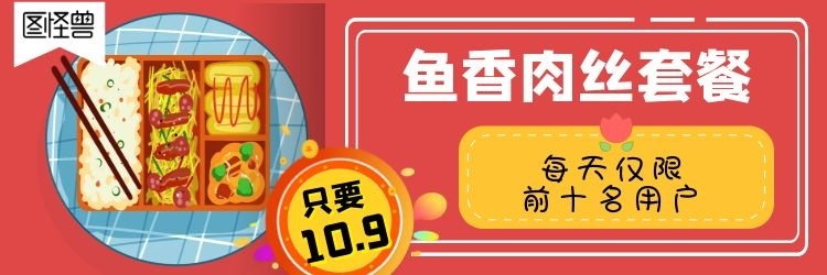 卡通手绘简约红色鱼香肉丝饿了吗主图店招