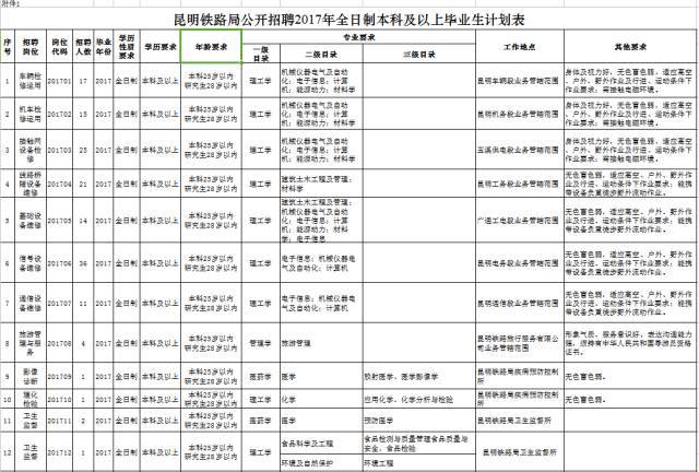 国企招聘交流群:575160309昆明铁路局根据发展需求,招聘2018届全日制高职大专毕业生,具体事宜公告如下:一、招聘人数、专业、岗位及工作地点本