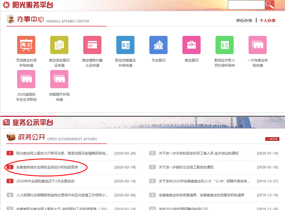 安徽省阳光就业网上办事服务大厅主要提供安徽省大学生就业登记失业登记就业创业登记证申请就业援助对象认定申请职业技能鉴定补贴申请灵活就业