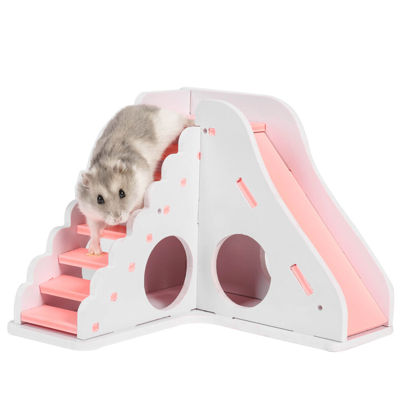 仓鼠窝别墅房子小屋攀爬滑梯环保保暖木屋仓鼠玩具仓鼠睡窝粉色-中号方形