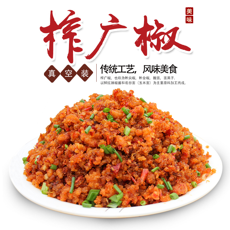 简介:榨广椒,也称为鲊尖椒,鲊金椒,酸面,面果子,是湖北省宜昌、恩施地区的特色小吃。榨广椒是以鲜红辣椒酱
