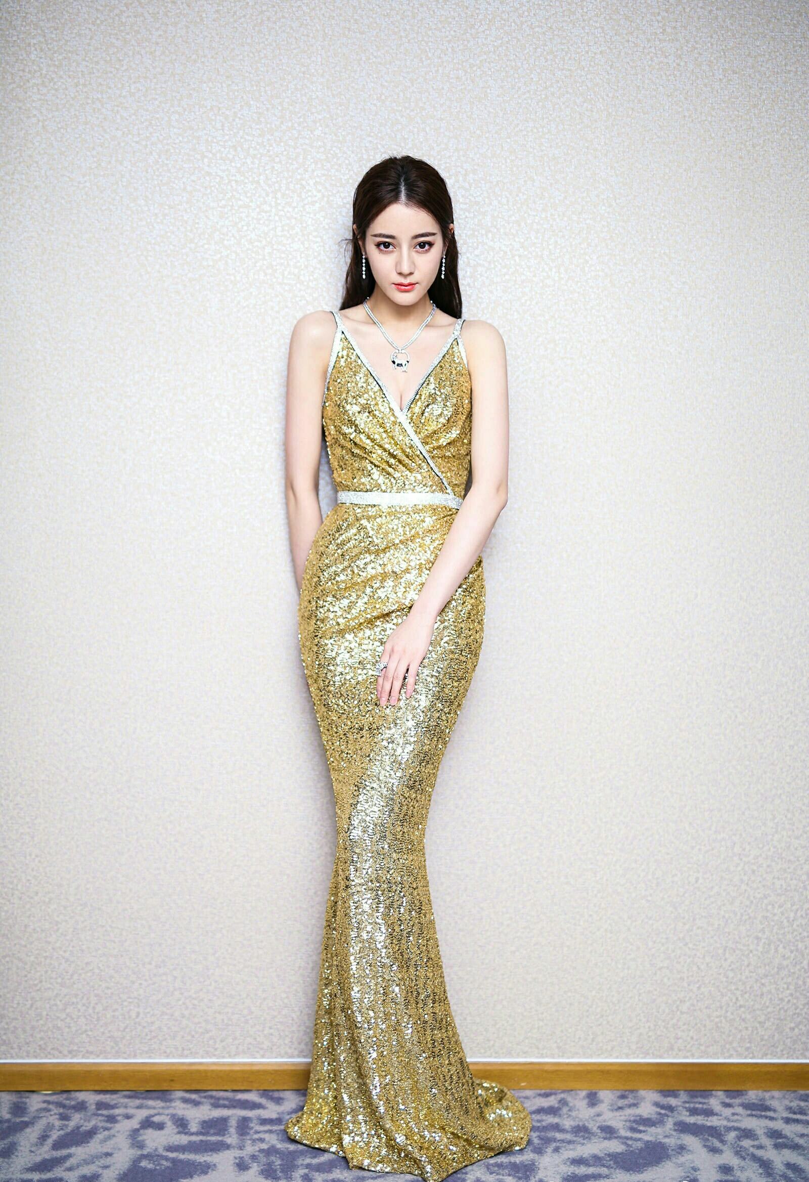迪丽热巴穿低V礼服露事业线!坐下时捂着