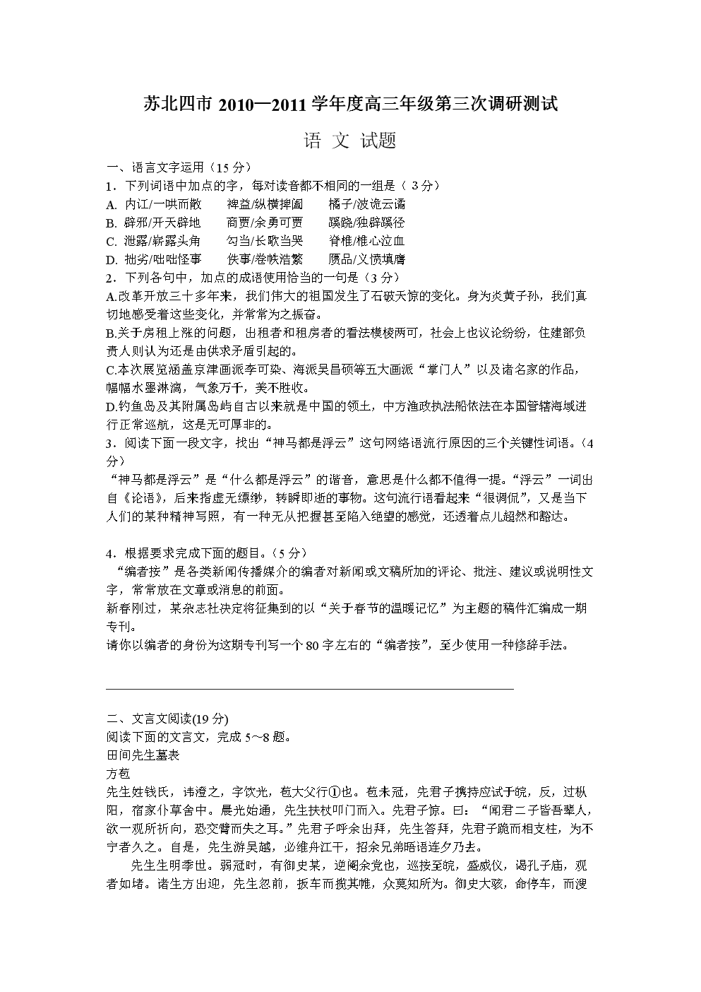 2017年的江苏单招模拟及-语文卷I精读.docx