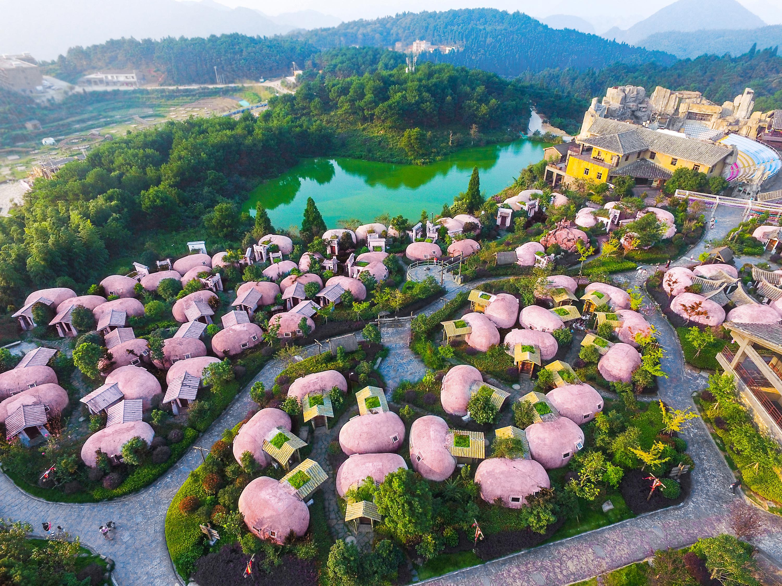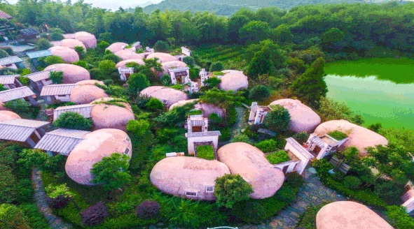 (一)永泰云顶蚂蚁窝蛋居酒店,全球特色的蛋型主题酒店,是云顶景区独有的特色酒店。粉色外观、小巧而神秘,复古与现代巧妙融合。根据山寨区域功能不同,蛋居酒店分为金窝、