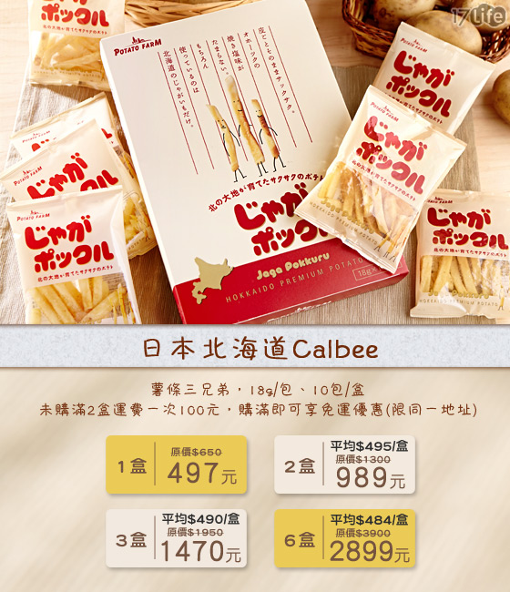 日本北海道Calbee-薯条三兄弟-办公室热销团购美食,正宗北海道Calbee薯条三兄弟来啰!日本空运来台,只要点点滑鼠就帮您宅配到府!,17Life,团购、宅配24小时到货、优惠券、即买即用