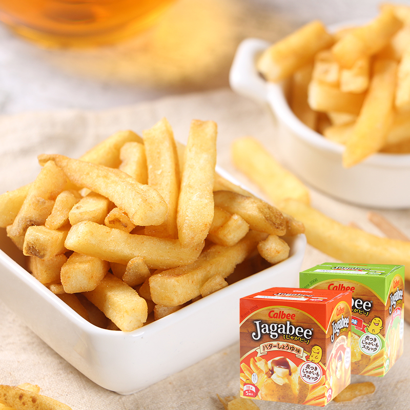 日本进口膨化零食calbee卡乐比薯条三兄弟北海道ins网红80g*4盒装黄油酱油