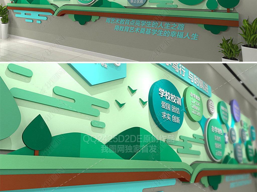 绿色清爽校园文化墙学校教室形象墙装饰设计