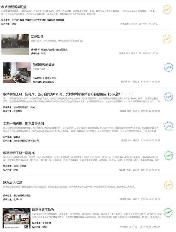 欧派家居口碑太差 直营店收入惨淡