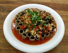 [最佳答案] 其实就跟拌凉菜差不多,就是稍微多放点盐以为一会莜面蒸好了要蘸着它吃的,最好是把 装小盆放锅里顿熟蘸莜面吃。 4. 现在开始压面,这个前提就是家里得有个压面器,把揉好