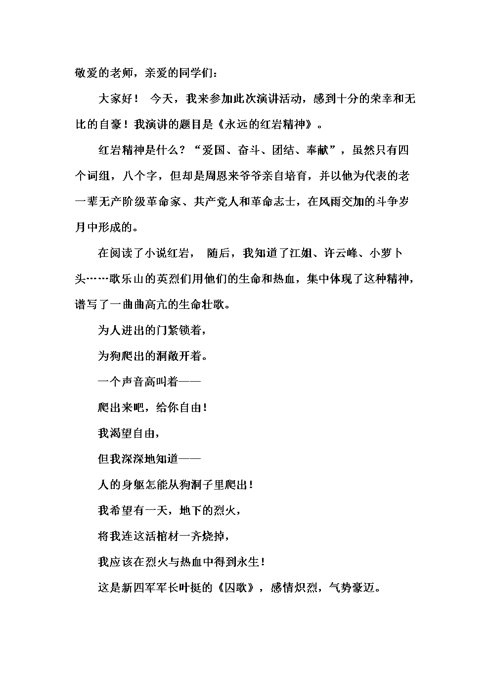 一、填空题1、《红岩》的作者是罗广斌、杨益言。2、狱中斗争是小说的主要部分,围绕_江姐、许云峰两位人物的斗争活动展开,真实地表现了共产党人英勇无畏的精神,揭露了敌人的残暴。3、在《红岩》这部小说里,有一位传奇式人物,令敌人闻风丧胆、恐慌不安。她就是被战士们亲切称为“双枪老太婆”的