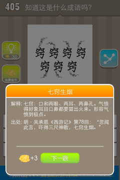 疯狂猜成语7个窍字其中有两个窍中间打了