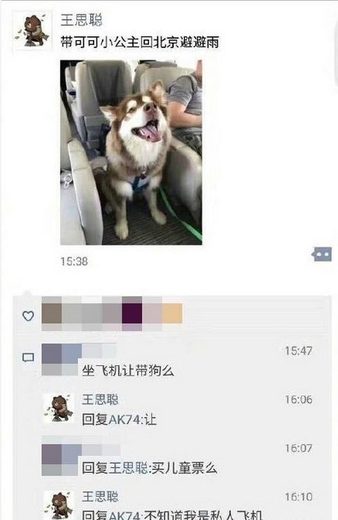王思聪带狗狗王可可乘坐私人飞机回京避雨