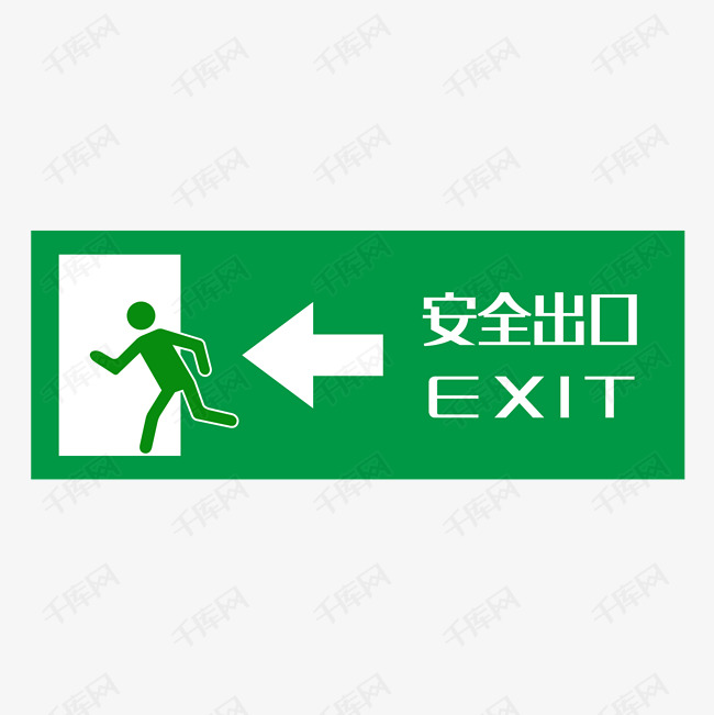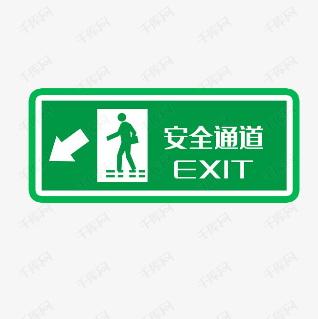 矢量绿色安全出口指示牌向左安全通道素材图片免费下载_高清psd_千库网