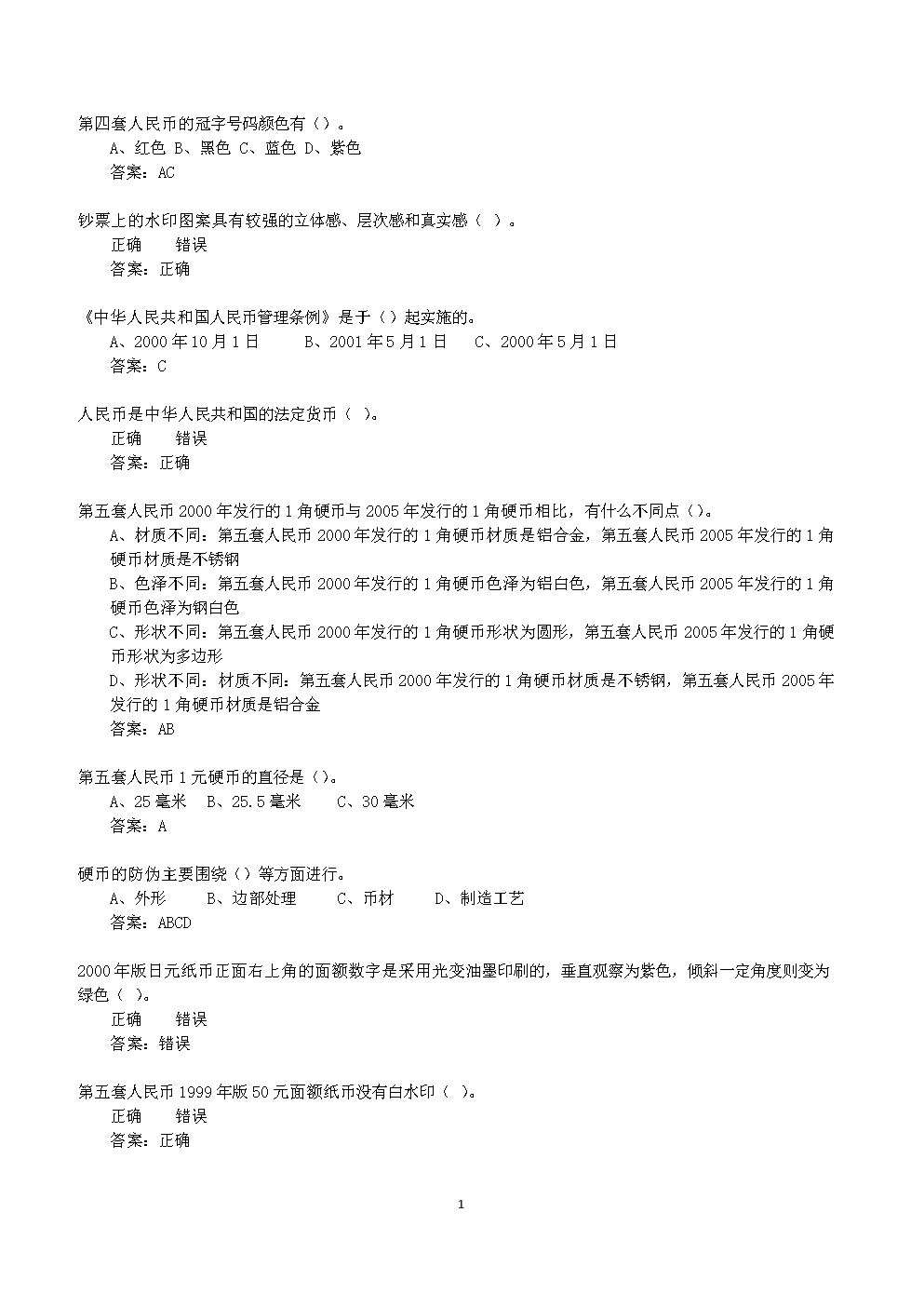 (反假币人员上岗资格考试试题