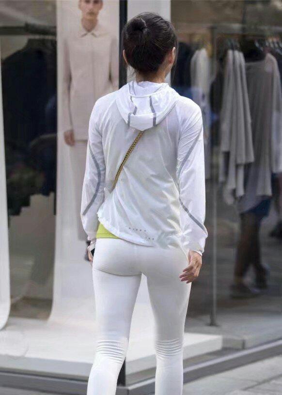 紧身裤塑出小翘臀 灰白打底裤百搭修身_