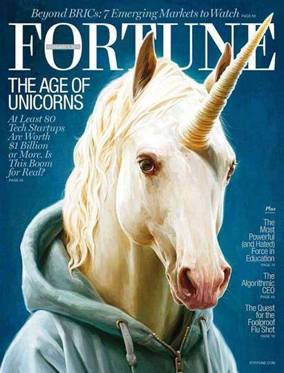 并将这些公司称为“独角兽”。然后这个词就迅速流行于硅谷,并且出现在《财富》封面上。 所谓“独角兽公司”是指那些估值达到10亿美元以上的初创企业。Lee发明独角兽