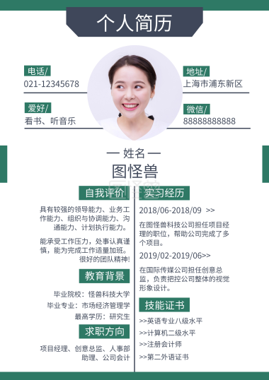 [最佳答案] 你一定是为优等生,不过这个个人简历,你说的应该是属于个人的简介和学习履历,并非是求职类的,所以呢,你们导师一定是要一份你的个人学习简化日程,和个性,尤其是你的为人处事,也就是侧重于你的人品介绍,所以你要切实到你所学的专业,比如文学的就要把简历的有文字功底最好书写,而化学一类的考教的是你的理工能力,逻辑问题,可以打印。所以你要先把你所学的是什么,为么选择这个专业,说出兴趣,体现品行。当然最基本的姓名,年龄,男女,民族,一定不能落下。 你一定要明白一般导师们最喜欢那些不说废话多做实事的学生,你想明白哦!