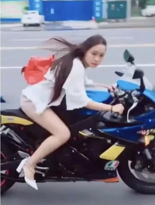 抖音机车女孩走红网络,网友:不穿裤子骑
