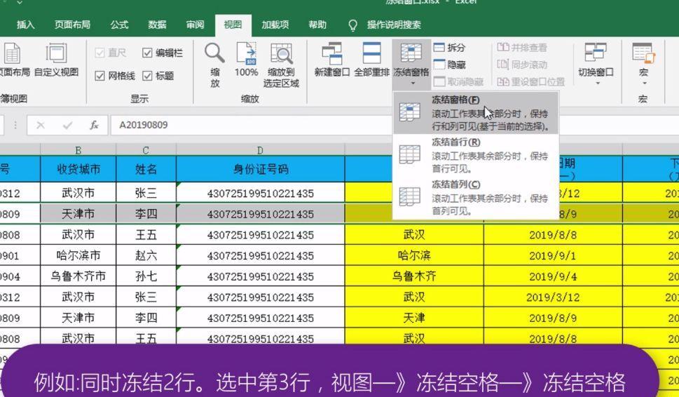 Excel表格冻结窗口怎么使用?同时冻结多行