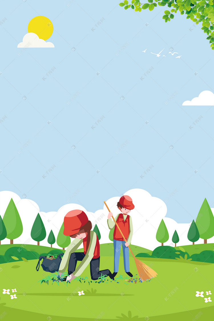 国际志愿者日草地清理垃圾海报