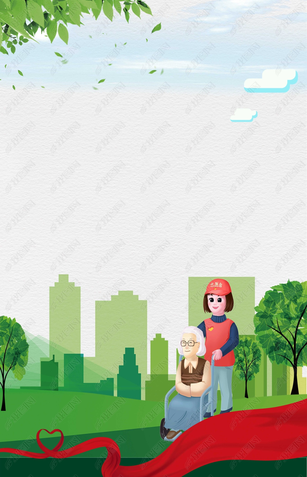 国际志愿者日帮助老人卡通海报