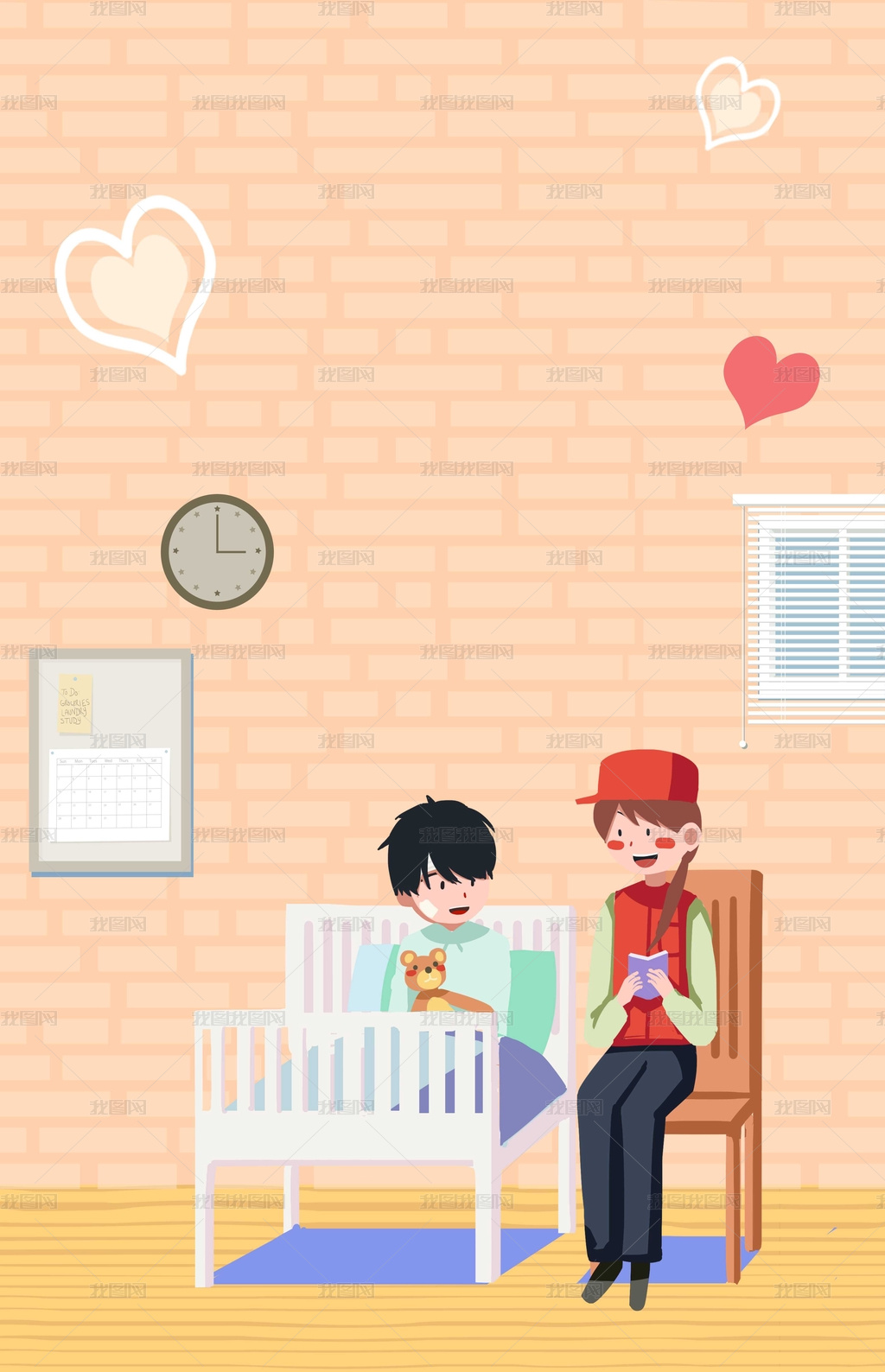 国际志愿者日关怀病人卡通海报