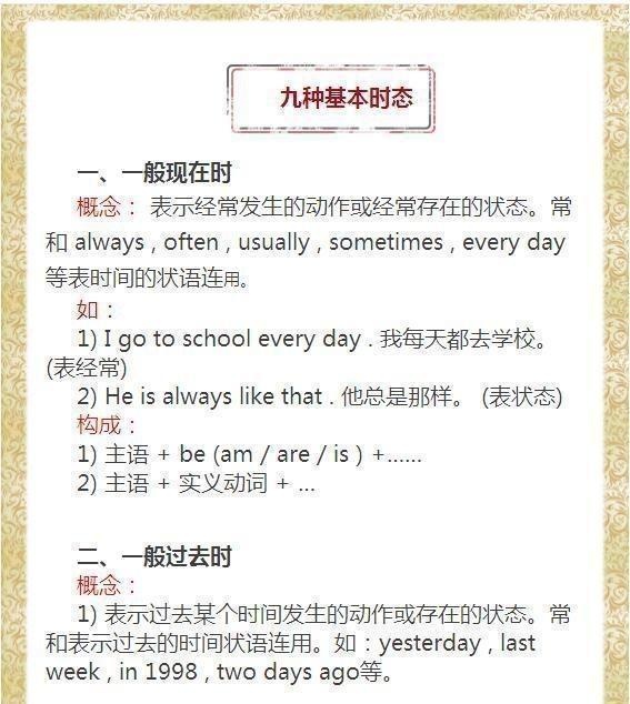 初中英语语法总结:9大时态+3大从句+20个重点句型!