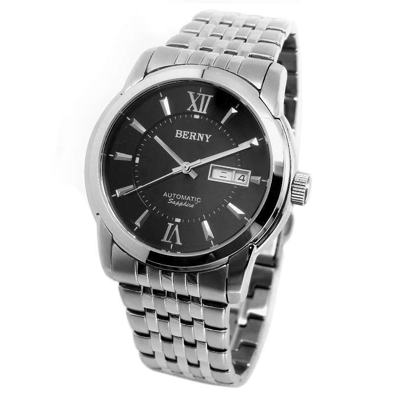 伯尼BERNY 男士商务休闲镂空机械表 精钢