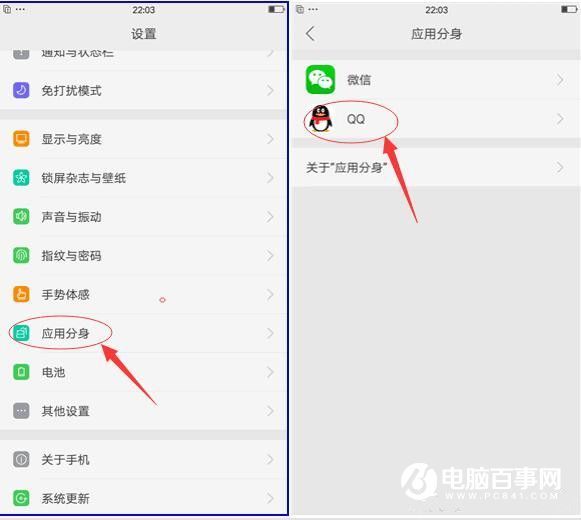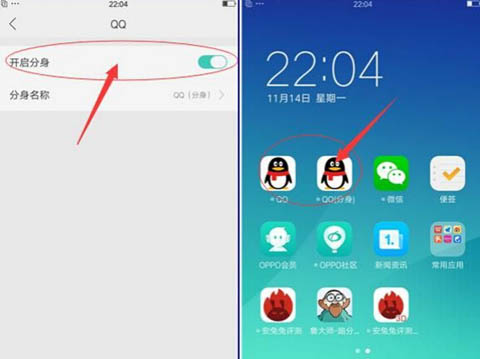 oppo r9s应用分身设置图文教程: 1、首先我们先打开【设置】,然后找到【应用分身】,打开后点击微信或者QQ。(如下图) 2、最后将开关打开就可以