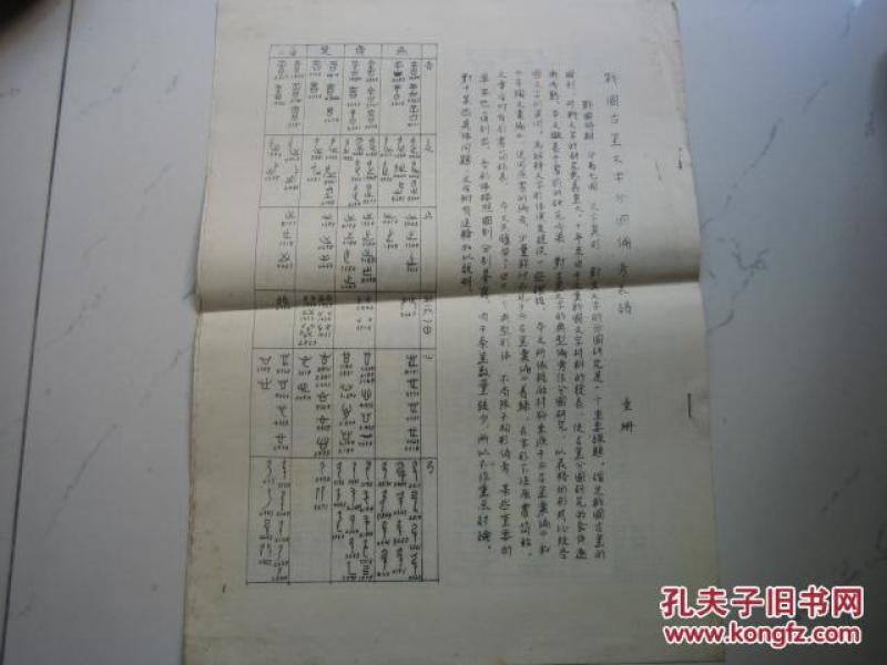 油印本:战国古玺文字分国偏旁表谱, 8开6页