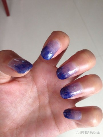 水蓝色美甲渐变美甲图片_彩虹里