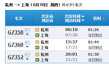 杭州到上海高铁时刻表_动车时刻表_列车