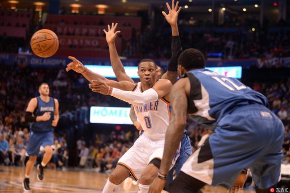 图文:[NBA]掘金VS雷霆 威斯布鲁克突破分球