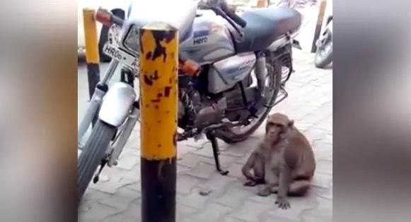 孕妇开摩托车途中没油了 交警顶着烈日帮
