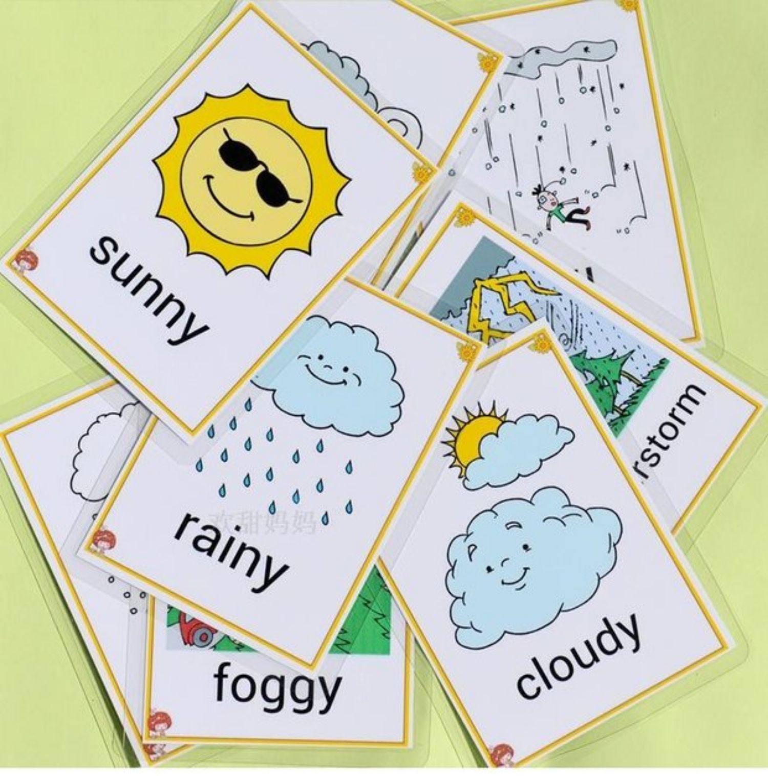Weather天气英文单词卡片彩图闪卡宝宝启蒙亲子早教英语教师教具