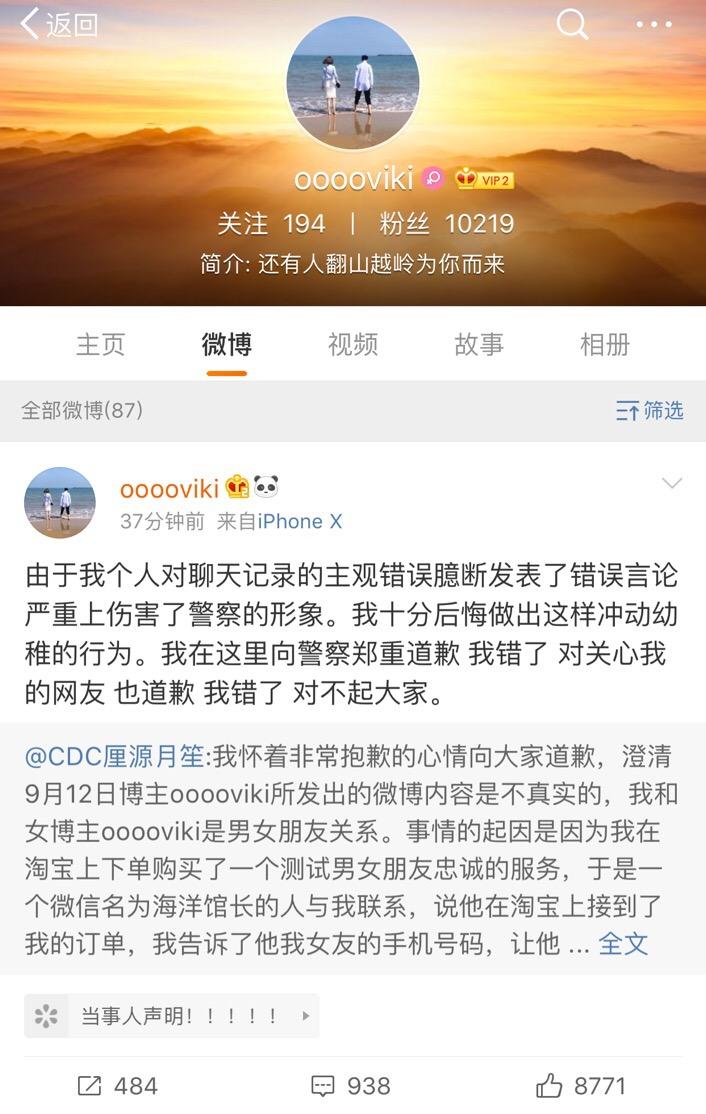 网警人肉求交往女孩致歉!系其男友找人