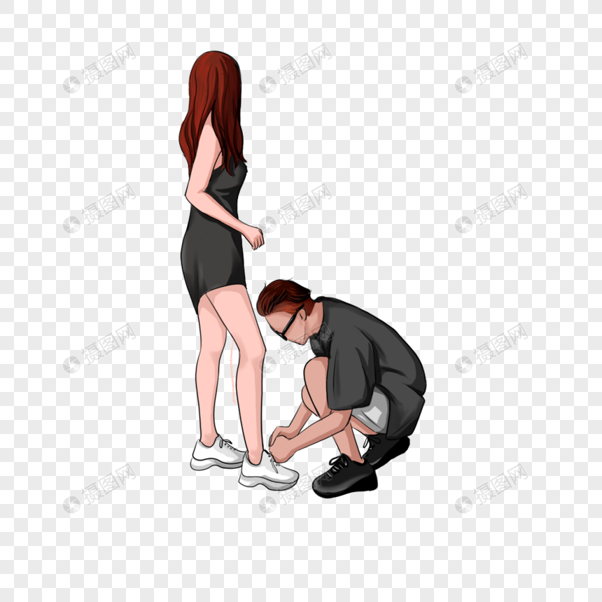 蹲着系鞋带的人图片素材-地板上蹲着系