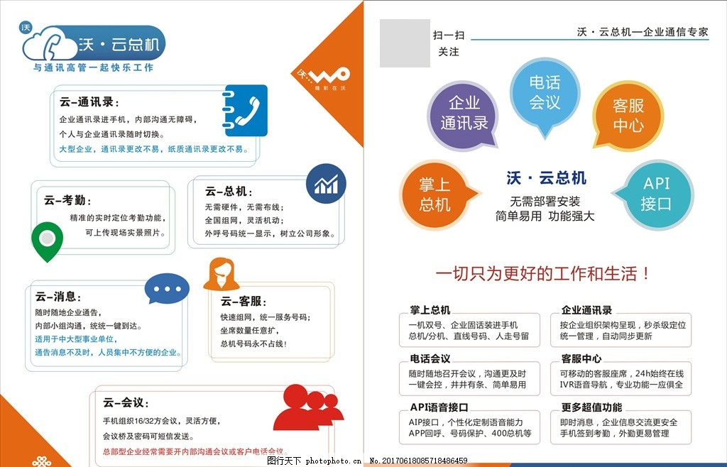 简介:沃云总机,"沃 云总机"是以智能手机APP为载体,融合固定电话、移动互联网应用为一体的企业级云服务。