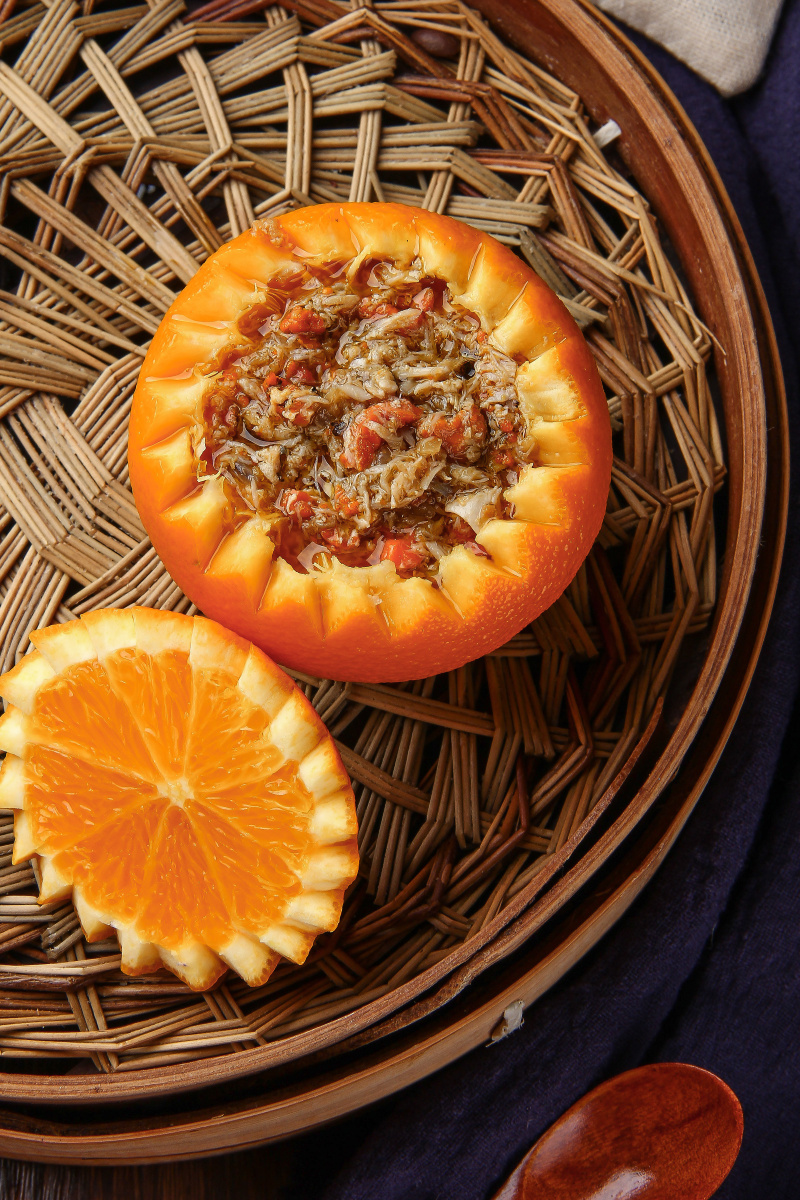 简介:蟹酿橙是江苏省阳澄湖的一道特色传统名菜,新颖、鲜美、气味特殊。蟹肉含有丰富的蛋白质及微量元素,对身