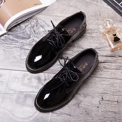 春季系带英伦风女鞋圆头黑色平