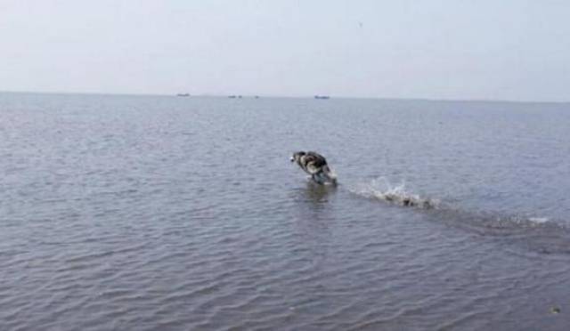 第一次去海边玩的二哈,一招“轻功水上漂”,技惊四座!
