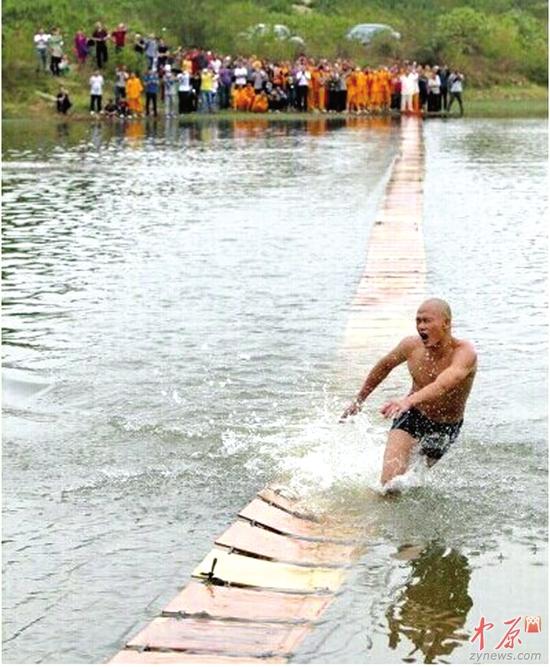 南少林武僧表演轻功水上漂 物理老师:不算啥_大豫网_腾讯网