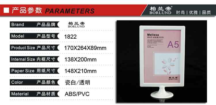 柏兰帝-亚克力台牌台卡桌签 A4广告展示桌牌 1807纸尺寸210*297mm